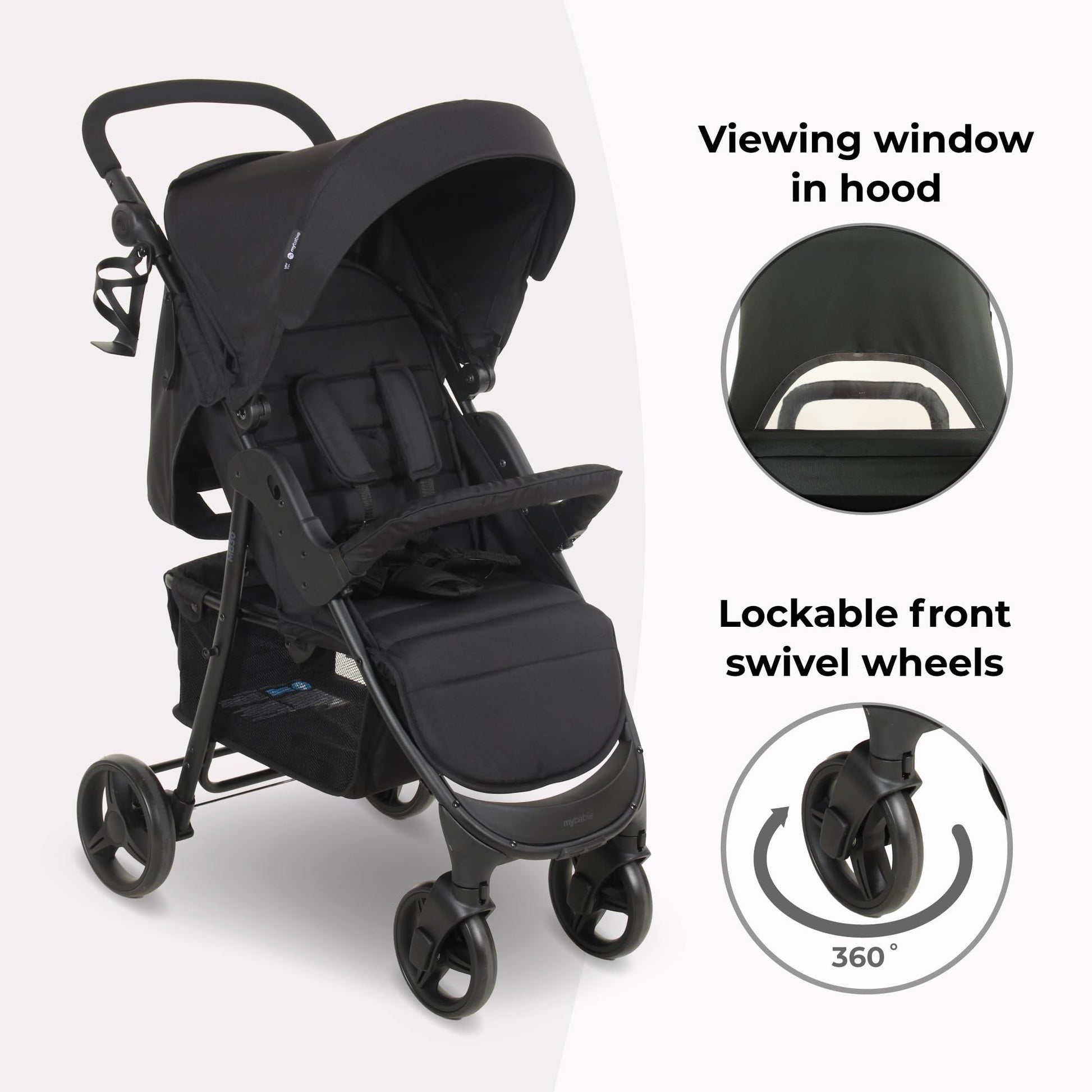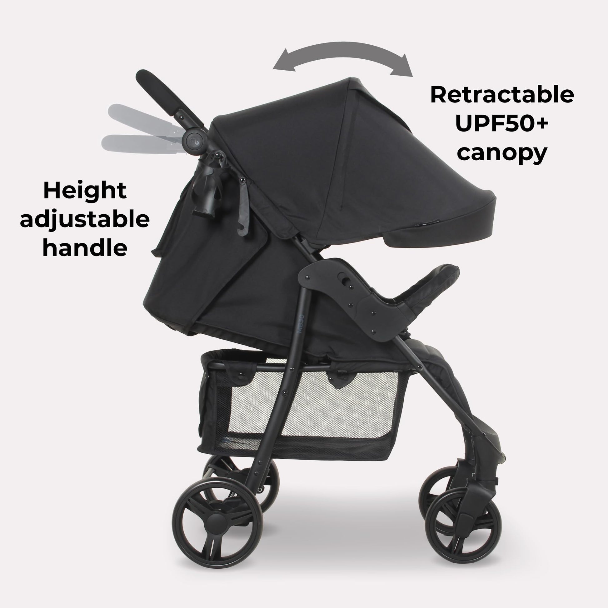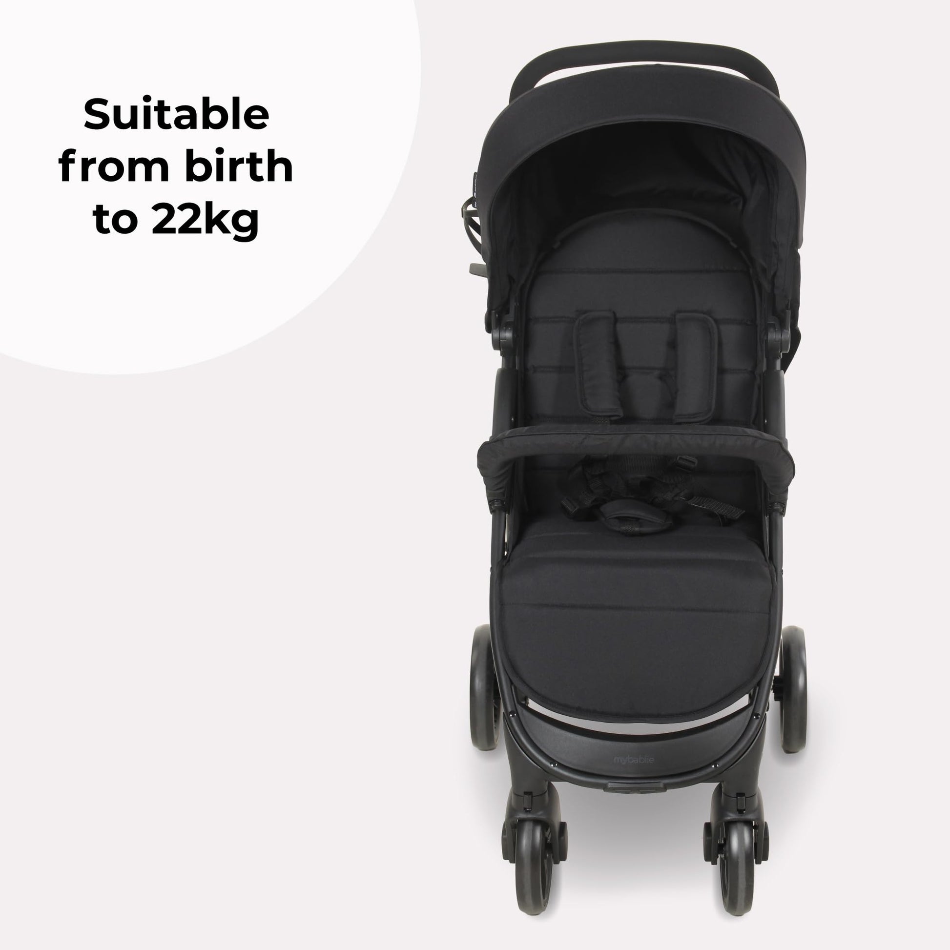Pushchair from Birth to 22kg, Compact Fold Stroller with Rain Cover & Cup Holder, Black